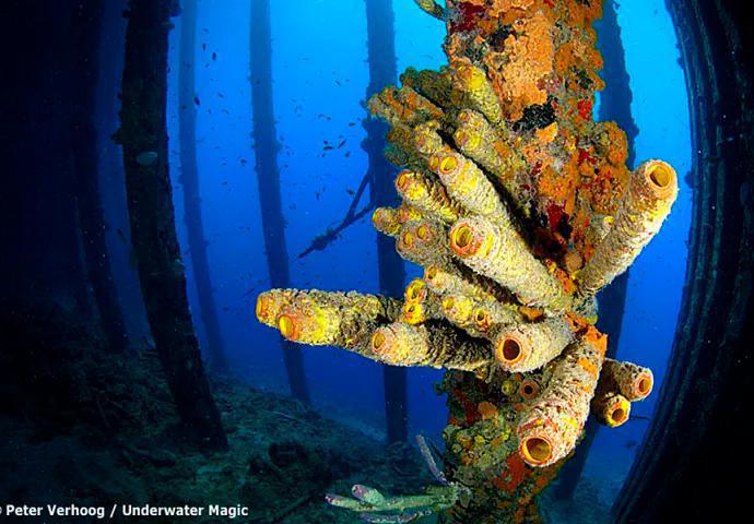 This wrecks can be accessed from the Seaquarium area, a recommended above-water site for visitors. Swim through the lagoon and out to the left (southeast), for about three minutes to the SS Oranje Nassau. A steamship built in 1884 and owned by the Royal West India Company, it grounded during a fierce storm in 1906. Look for very healthy coral, morays and lots of small reef fish.